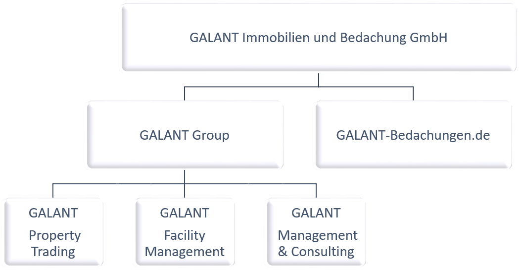 Die GALANT Immobilien und Bedachung GmbH teilt sich in die Unternehmensbereiche Bedachungen und Immobilien auf. Während die Bedachungssparte durch die GALANT-Bedachungen.de komplett abgedeckt wird, wurde die GALANT Group aus unternehmenspolitischen Gründen in drei operative Divisionen unterteilt, um der Komplexität des Immobiliengeschäfts Rechnung tragen zu können. Nur so kann eine optimale Abwicklung aller aufkommenden vielschichtigen und komplexen Prozesse garantiert werden:
